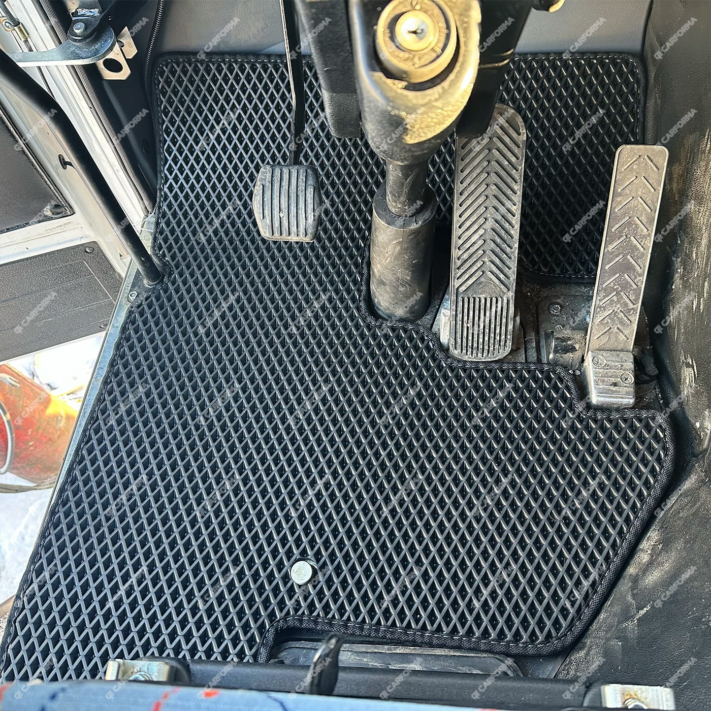 - Передние ковры полностью закрывают место под левую ногу водителя (зависит от авто)