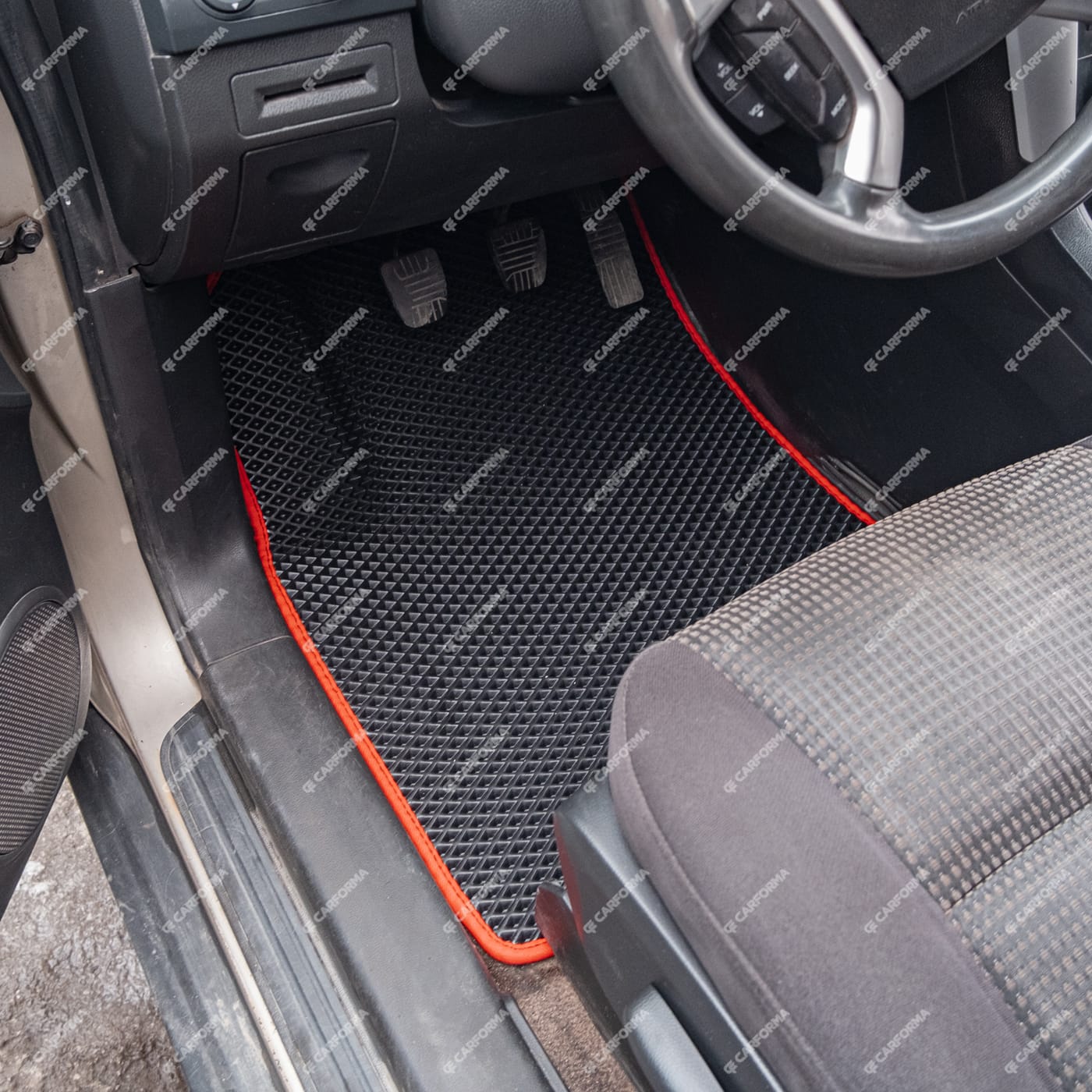- Передние ковры полностью закрывают место под левую ногу водителя (зависит от авто)