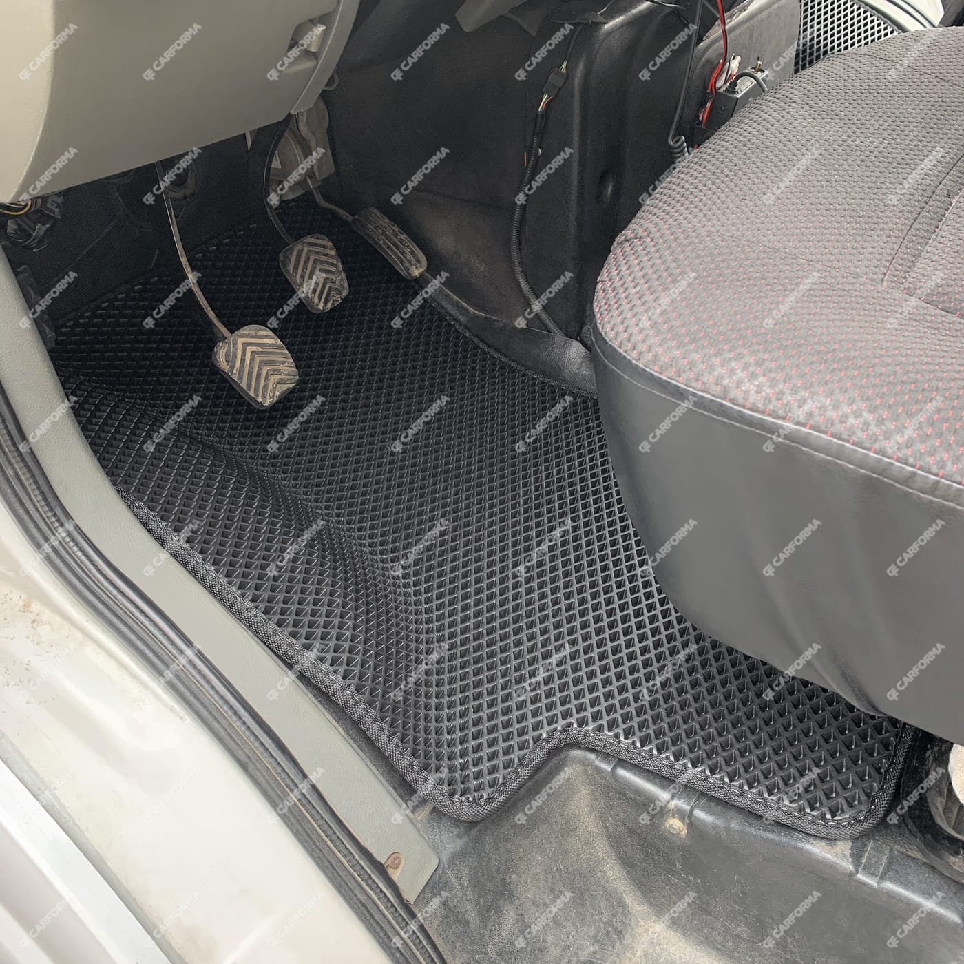 - Передние ковры полностью закрывают место под левую ногу водителя (зависит от авто)