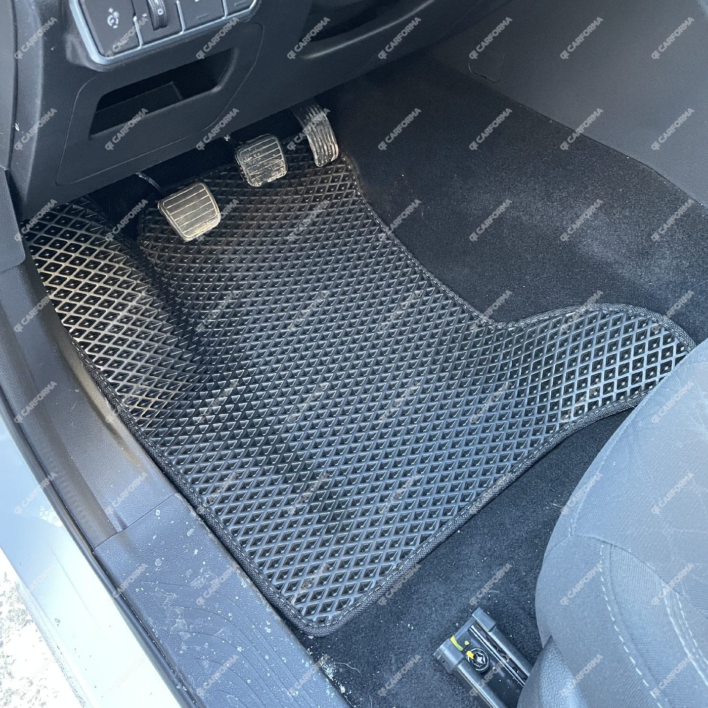 - Передние ковры полностью закрывают место под левую ногу водителя (зависит от авто)