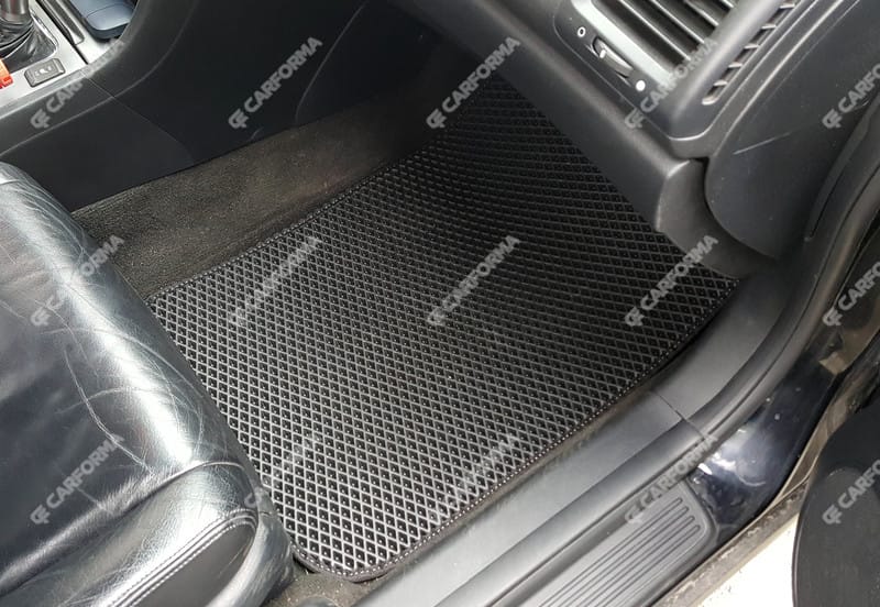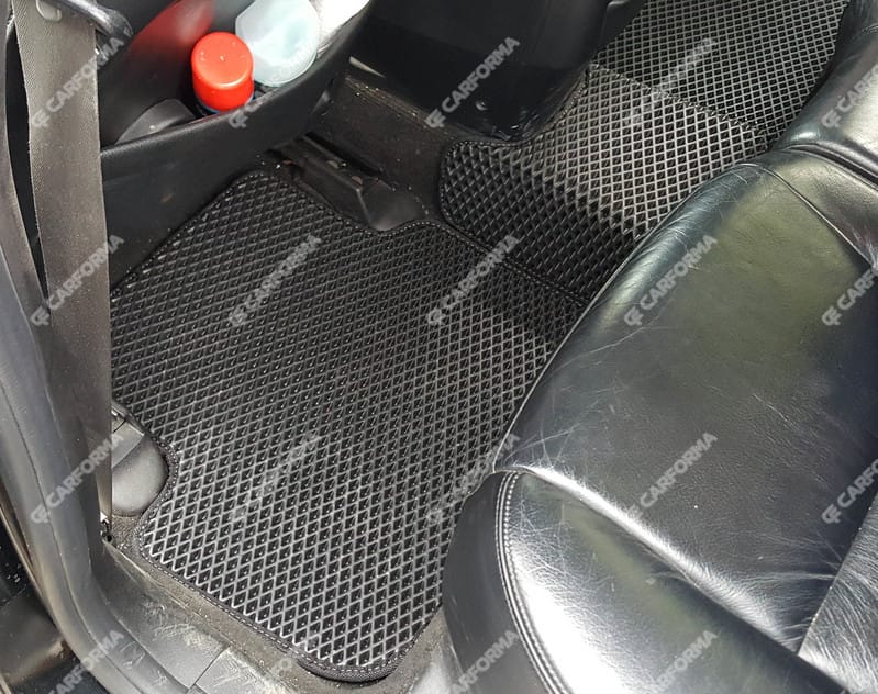 Автоковрики ЕВА не впитывают, а удерживают грязь в ячейках. Вода не катается по полу, как в резиновых половичках, однако, её все равно видно. ЕВА удобны тем, что их легко достать не пролив и вытряхнуть. Они дешевле.