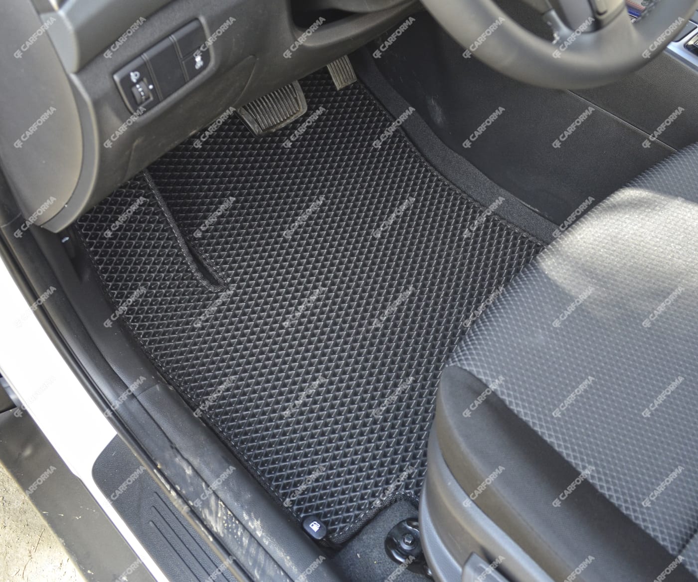 - Передние ковры полностью закрывают место под левую ногу водителя (зависит от авто)