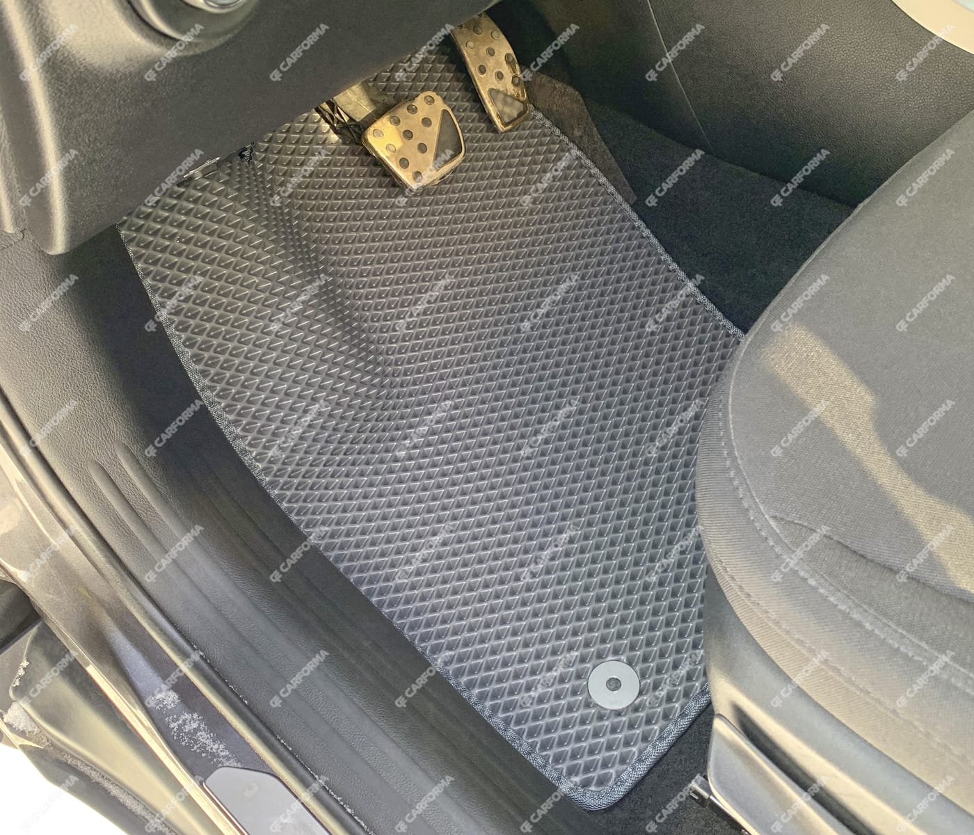 - Передние ковры полностью закрывают место под левую ногу водителя (зависит от авто)