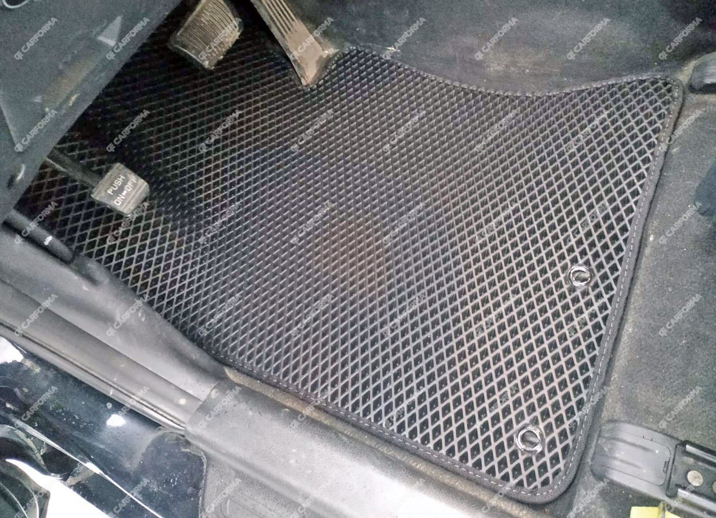 - Передние ковры полностью закрывают место под левую ногу водителя (зависит от авто)