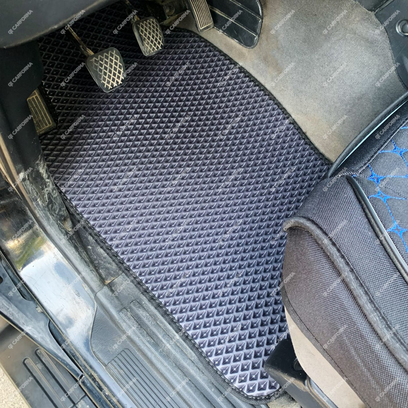 - Передние ковры полностью закрывают место под левую ногу водителя (зависит от авто)