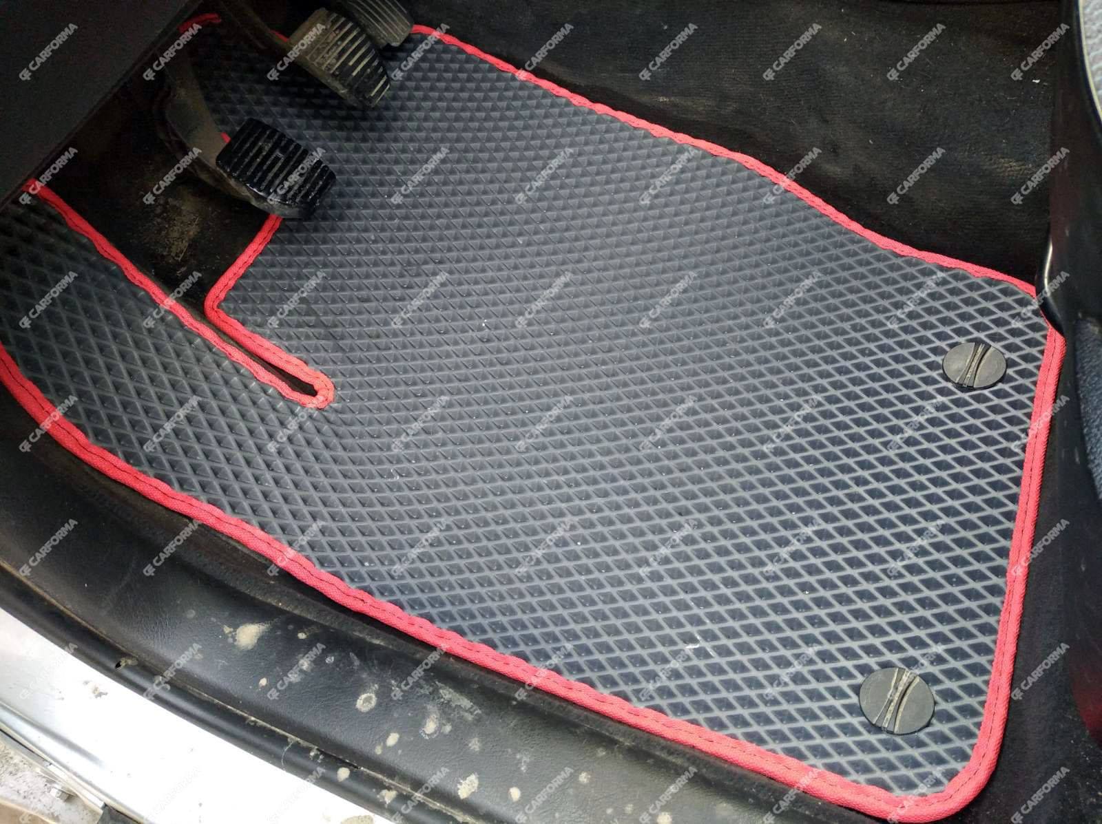 - Передние ковры полностью закрывают место под левую ногу водителя (зависит от авто)