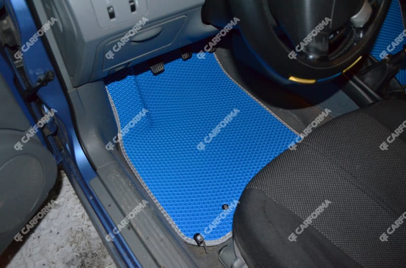 Автоковрики ЕВА не впитывают, а удерживают грязь в ячейках. Вода не катается по полу, как в резиновых половичках, однако, её все равно видно. ЕВА удобны тем, что их легко достать не пролив и вытряхнуть. Они дешевле.