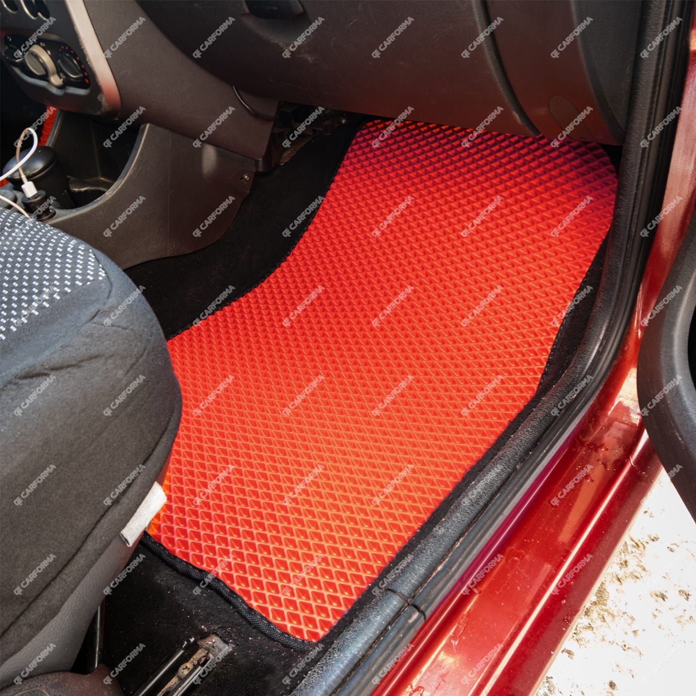 - Передние ковры полностью закрывают место под левую ногу водителя (зависит от авто)