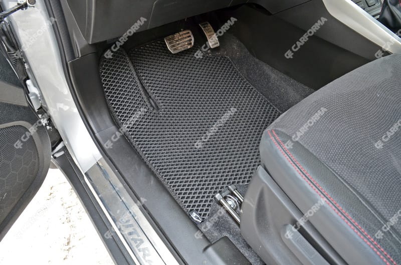 Все автомобильные коврики для Suzuki Vitara (2014 - 2025) от CARFORMA в Таганроге (Ростовская область) изготавливаются из ворса по оригинальным лекалам, благодаря чему полностью повторяют форму салона, все заводские выступы и вырезы напольного покрытия автомобиля. Коврики фиксируются на полу при помощи специальных клипс и остаются на месте даже при очень быстрой езде.