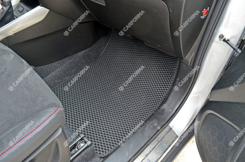 - Передние ковры полностью закрывают место под левую ногу водителя (зависит от авто)