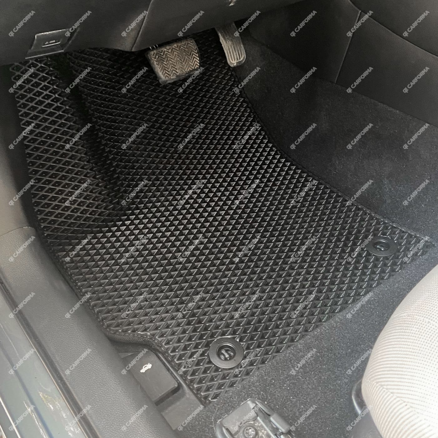 - Передние ковры полностью закрывают место под левую ногу водителя (зависит от авто)