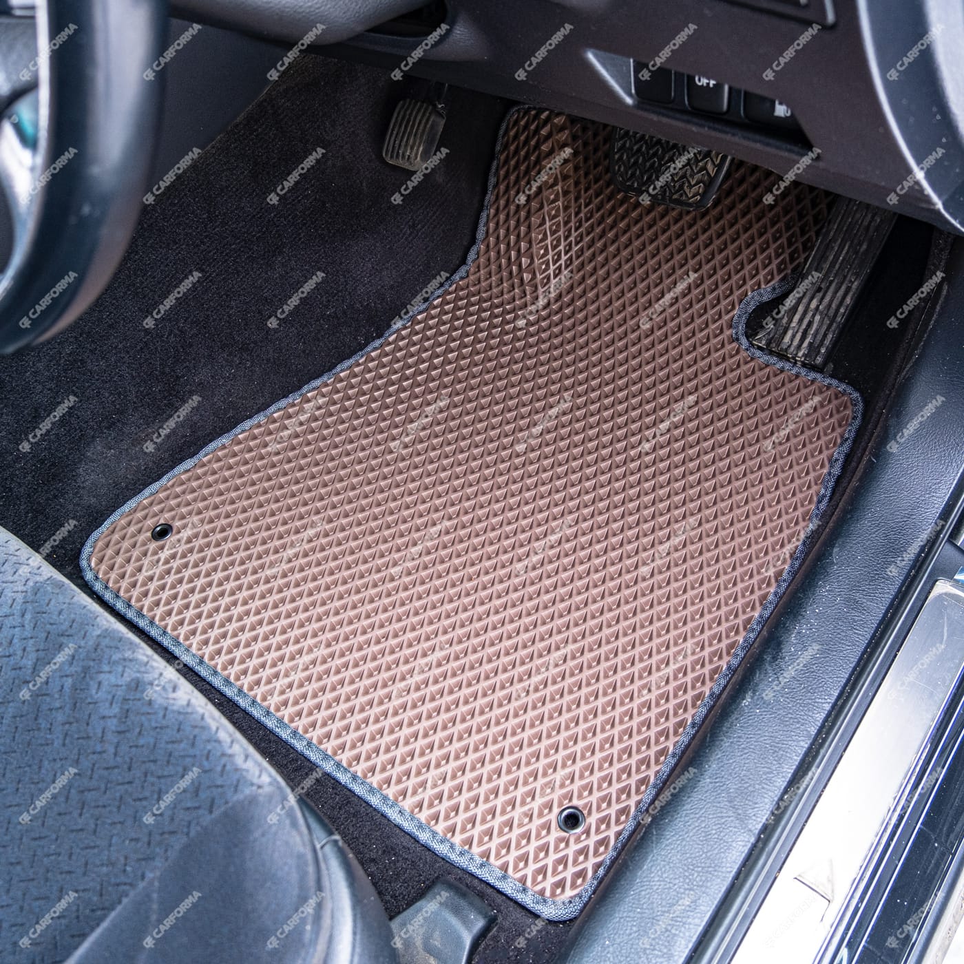 - Передние ковры полностью закрывают место под левую ногу водителя (зависит от авто)