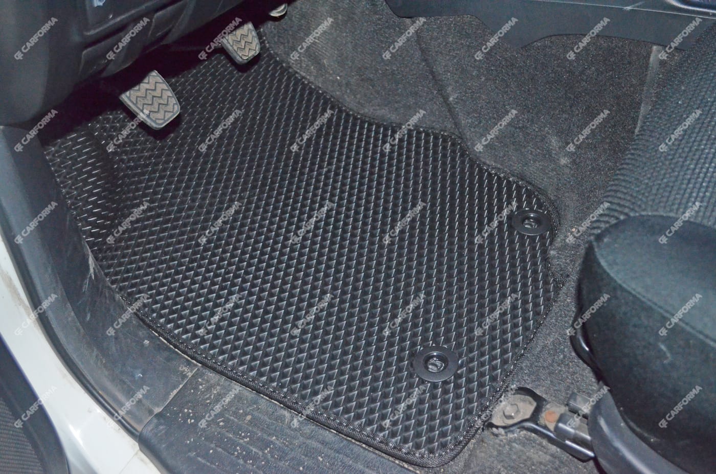 - Передние ковры полностью закрывают место под левую ногу водителя (зависит от авто)